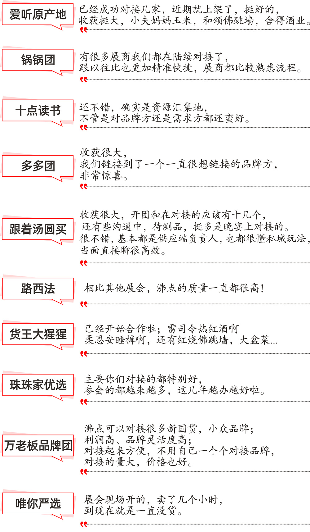 很多供貨商說:面對面推品對接會這個環節太好了,可以精準找到想要對接的渠道,精準向他們推品,快速得到反饋,高效促成合作。