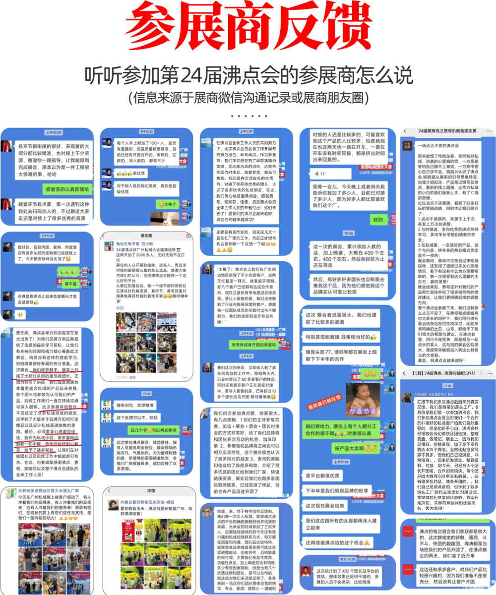 第24屆沸點會、廣州私域團長大會暨2024(廣州)直播+社群團購貨源供應鏈展覽會,于2024年8月8-9日,在廣州保利世貿博覽館圓滿舉辦!同期舉辦了2024(廣州)新品爆品貨源展覽會、2024全國地標美食博覽會以及有機食品店主選品會,本屆展