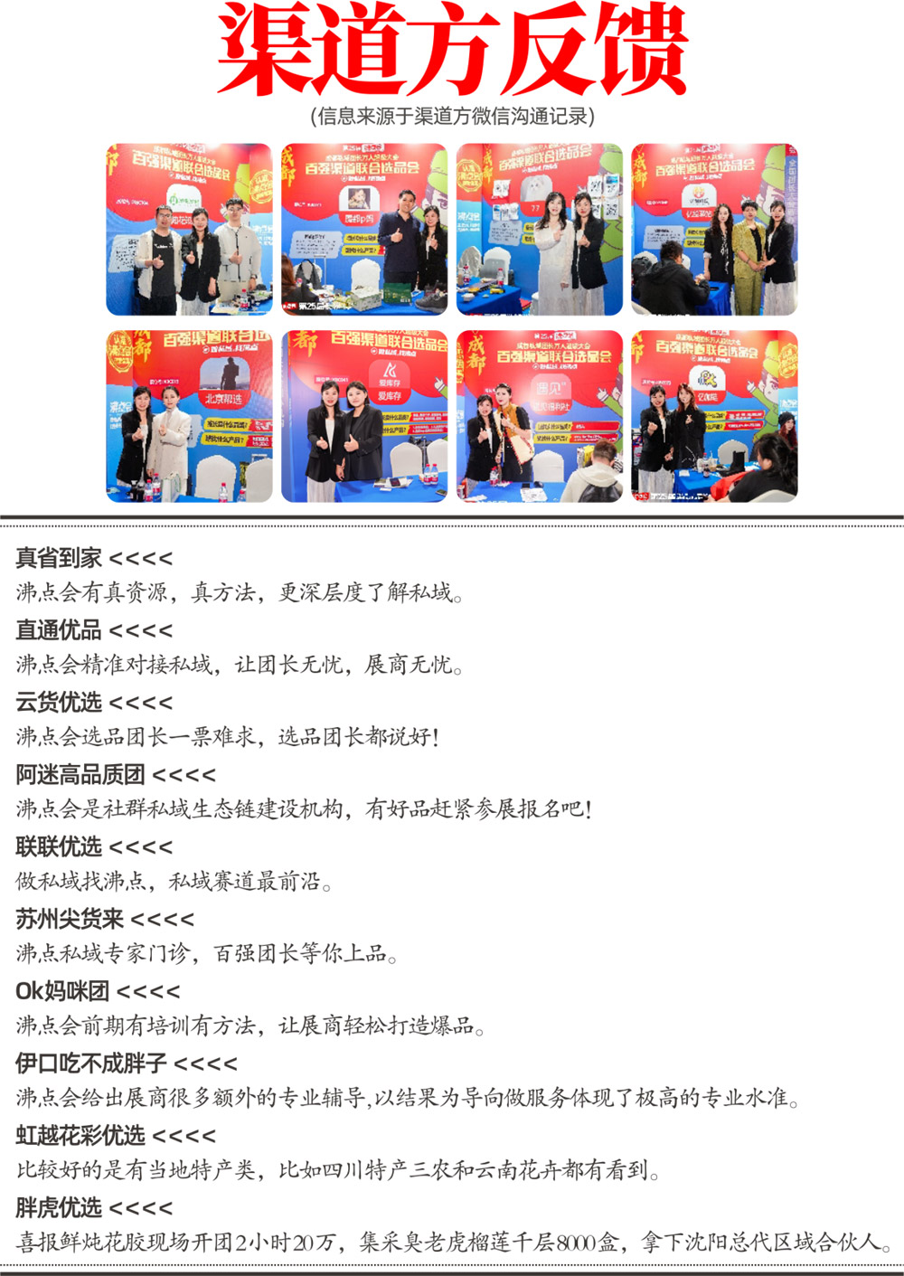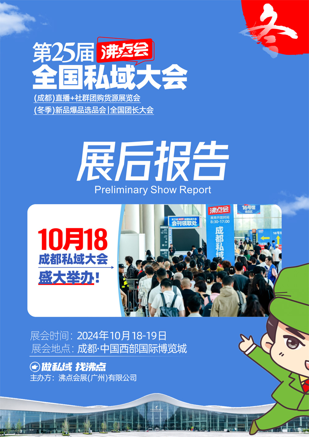 第25屆沸點會、成都全國私域大會暨(成都)直播+社群團購貨源展覽會,于2024年10 月17-19日在成都中國西部博覽城圓滿舉辦!同期舉辦了(冬季)新品爆品選品會,本屆沸點會以“私域生態,共創未來”為主題,通過一系列精彩的論壇分享、展覽洽談和精準對接活動,解析私域的最新趨勢,揭秘暢銷產品的因素,分享實戰經驗,建聯渠道合作,共同推動行業的健康發展。
